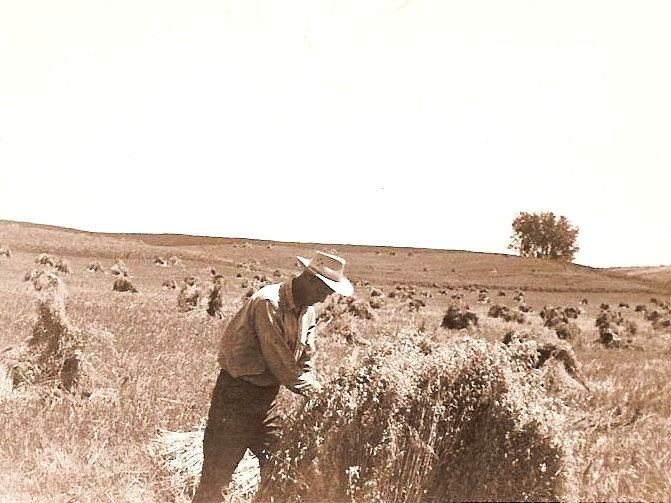Oat shocks ready for threshing.